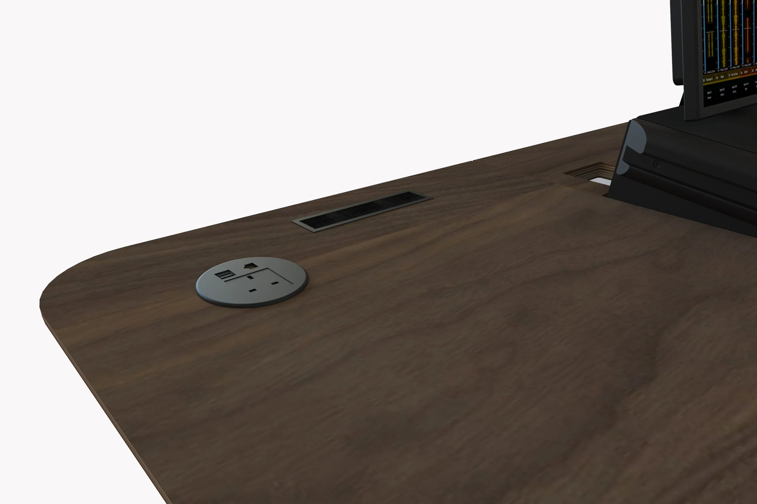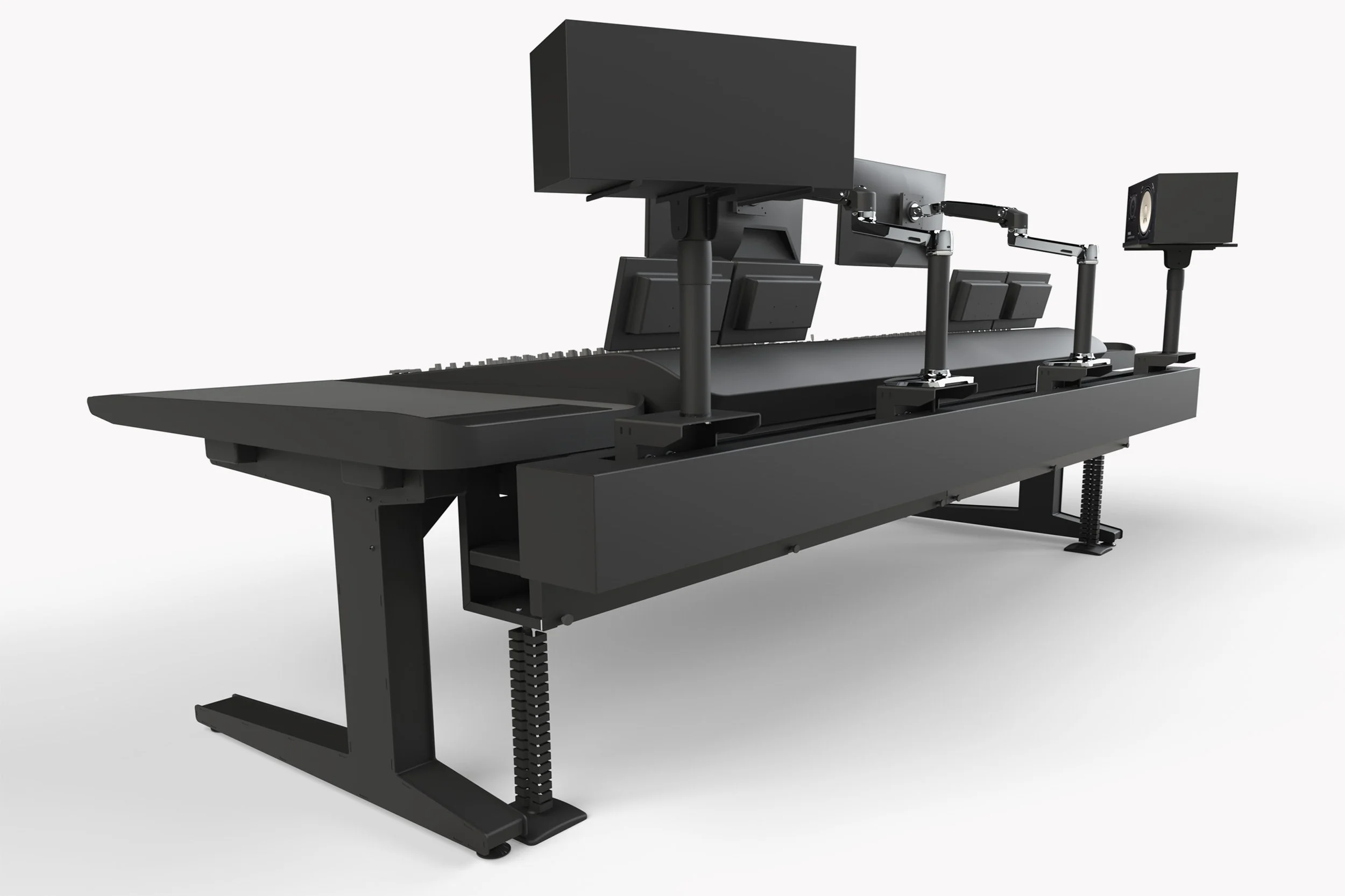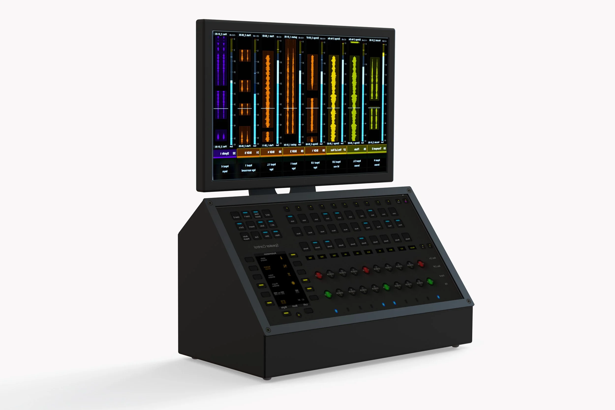 The desktop enclosure sits within the control surface and includes its own PSU.